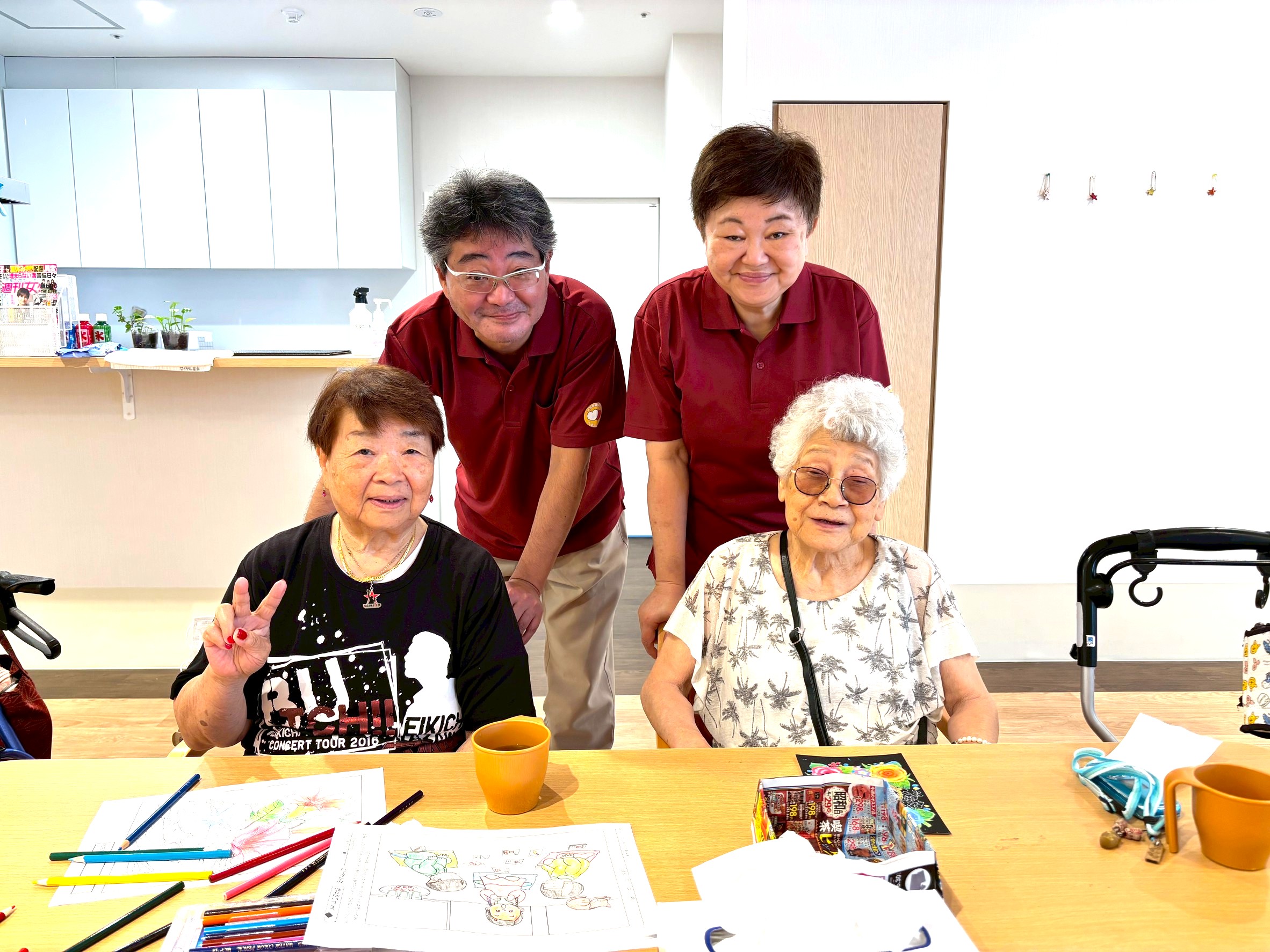 一律のメニューではなく、小さなグループや個別の希望に応じた活動を取り入れて、お一人おひとりの”やってみたい”を、レクリエーションに反映しています。塗り絵や体操だけでなく、懐かしい歌を一緒に歌ったり、畑仕事をしたり。利用者様の「昔よくなっていたこと」をきっかけに、その人に合った楽しみをご提供しています。